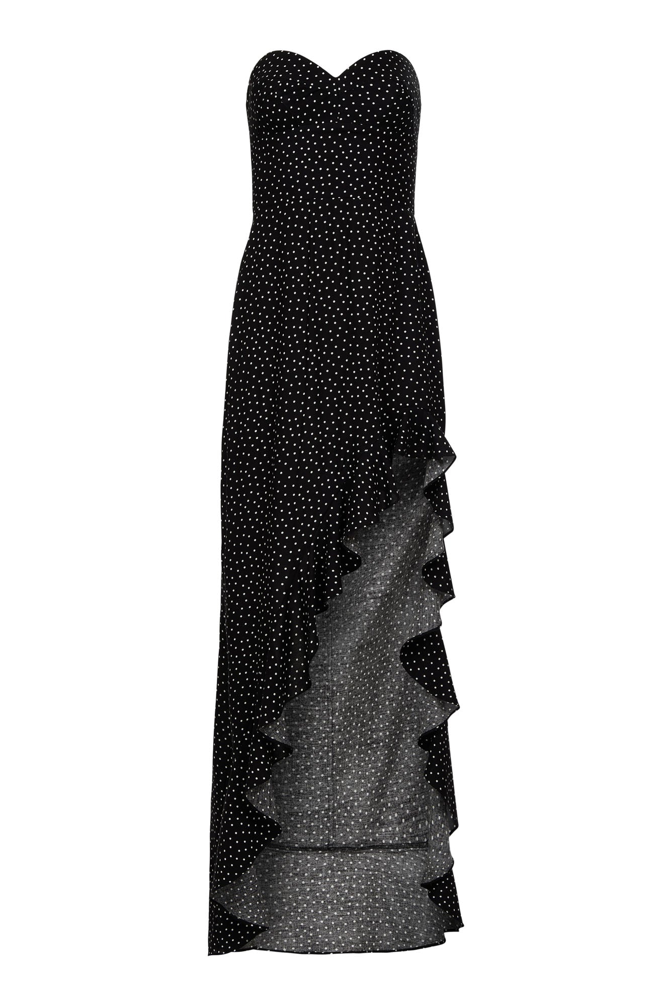 Catch eyes in the Amalia Gown. Designed with a sweetheart neckline and ruffled asymmetrical hem, this flirty dress is the perfect combination of romance and fun. Pair it with strappy heels for an unforgettable look.