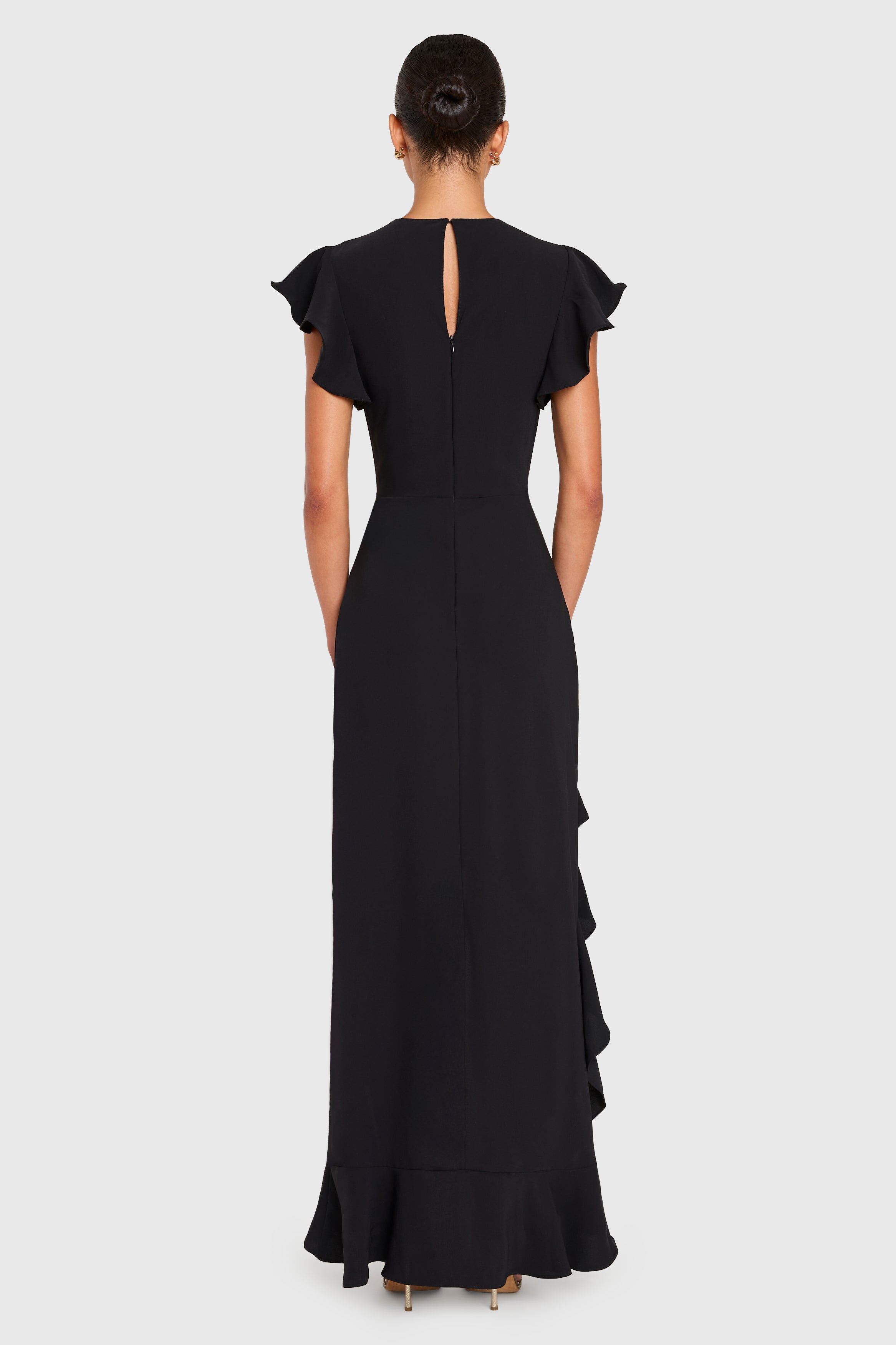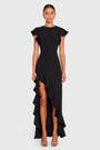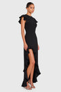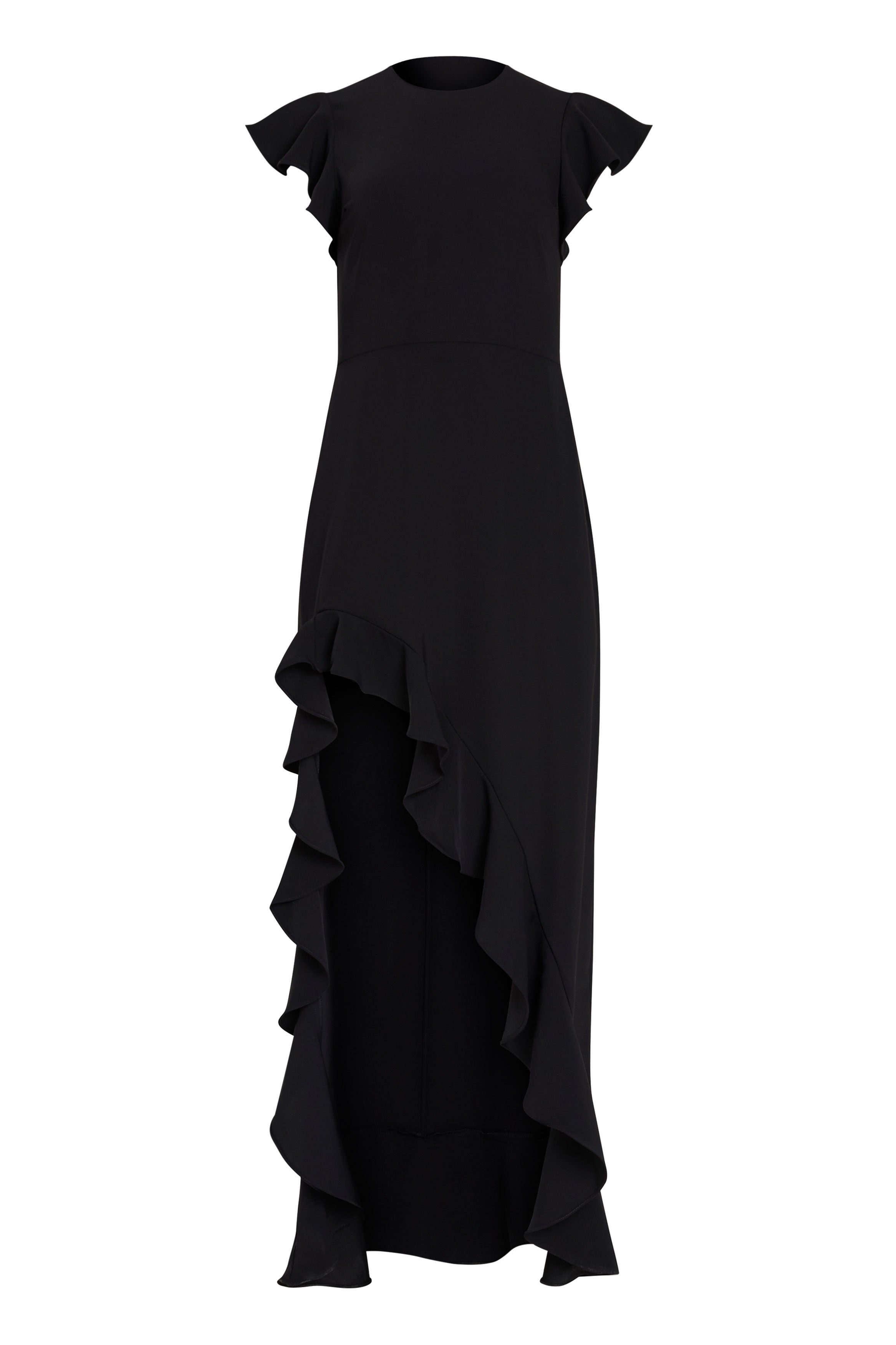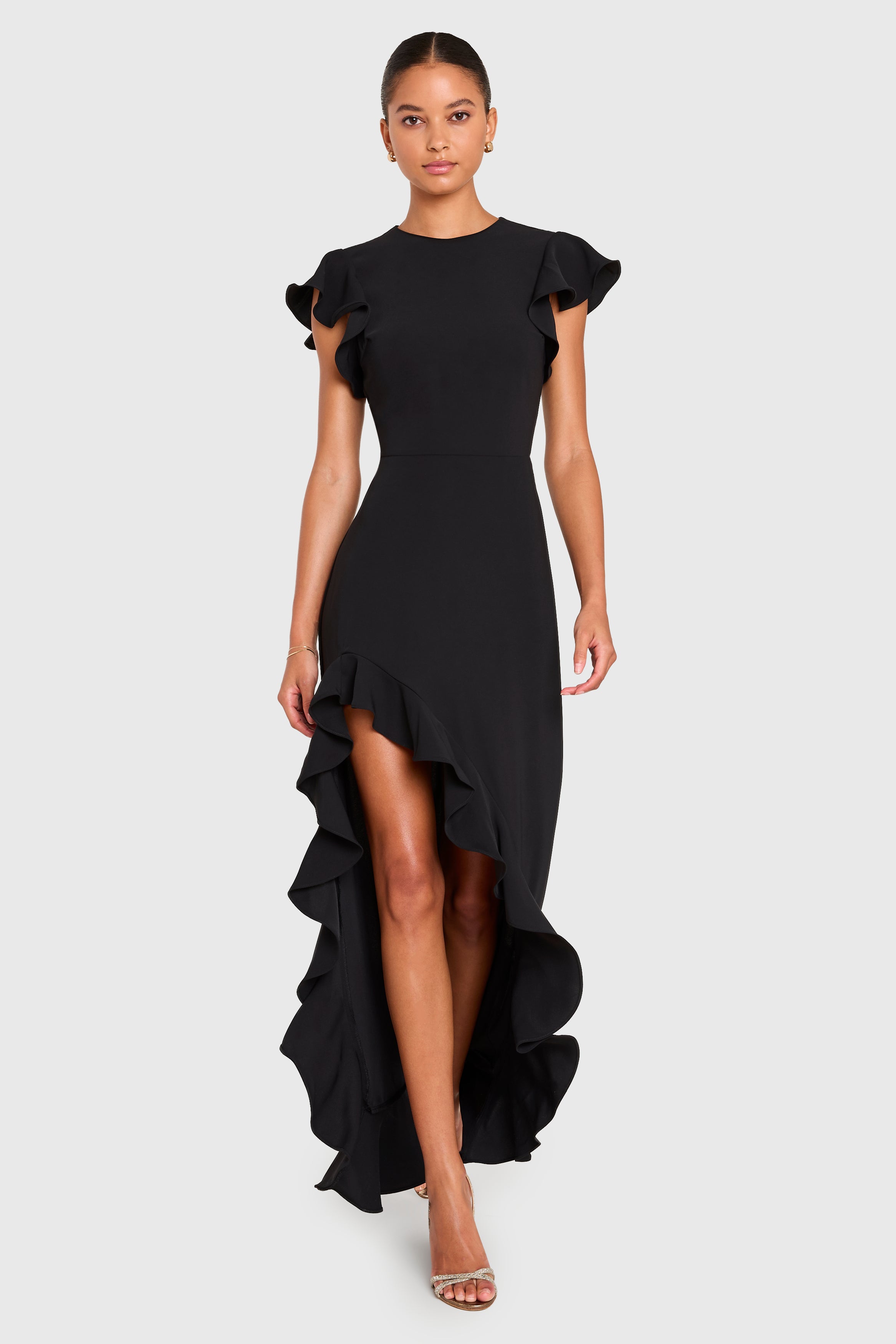 Go with the flow in the Anarosa Dress. Designed with a high neckline and gently ruffled sleeves, the asymmetrical hem brings the perfect amount of movement to your look. Pair with dainty heels and silver jewelry for an elegant finish.