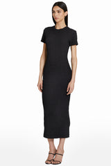 Woman wearing a white dress with ruffled sleeves on a white background view 2