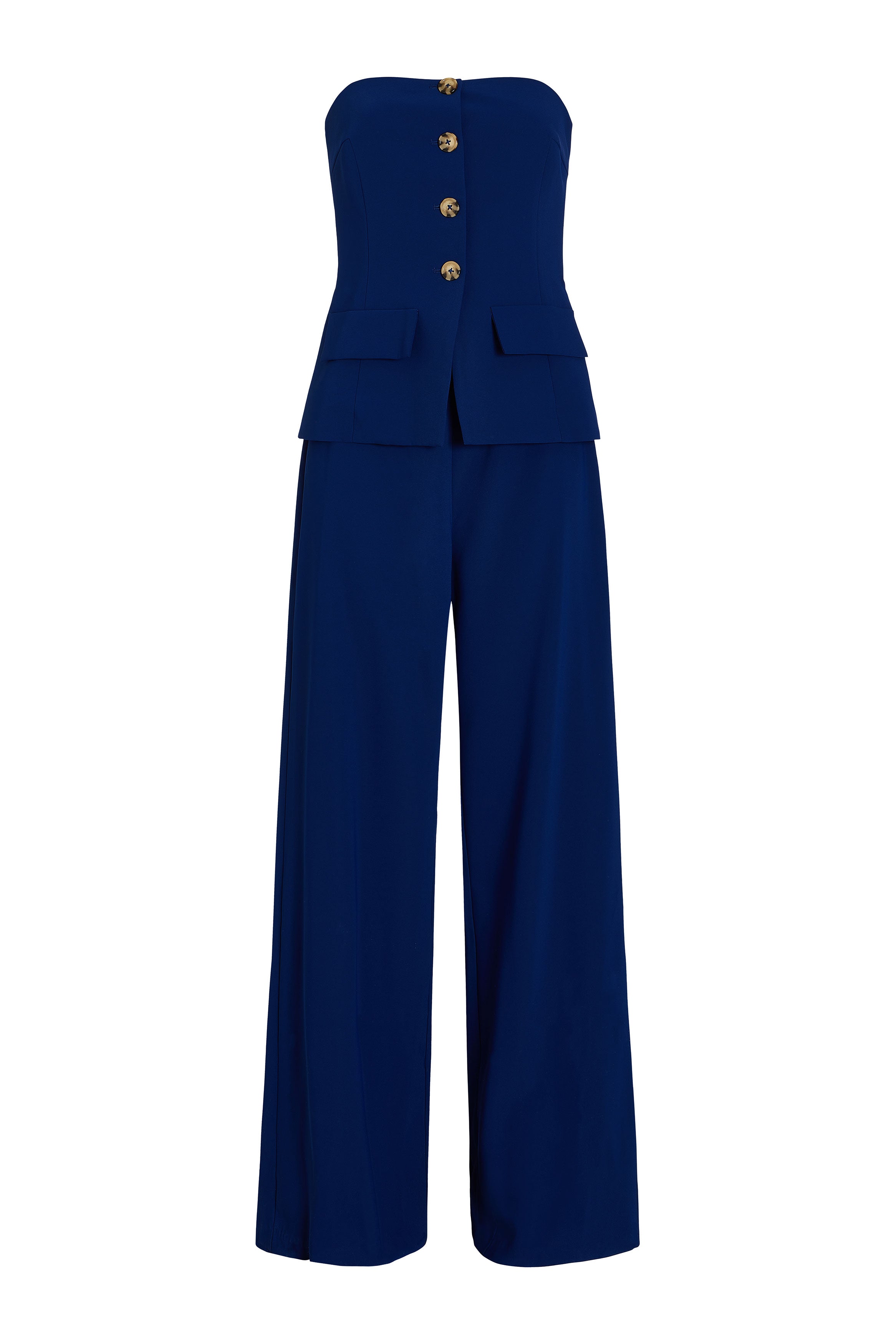 Look your best in the Yadira Jumpsuit. The structured, strapless top features a button-up design with elevated pocket flaps, finished with a wide leg pant. Style with open toe heels for a put-together look.